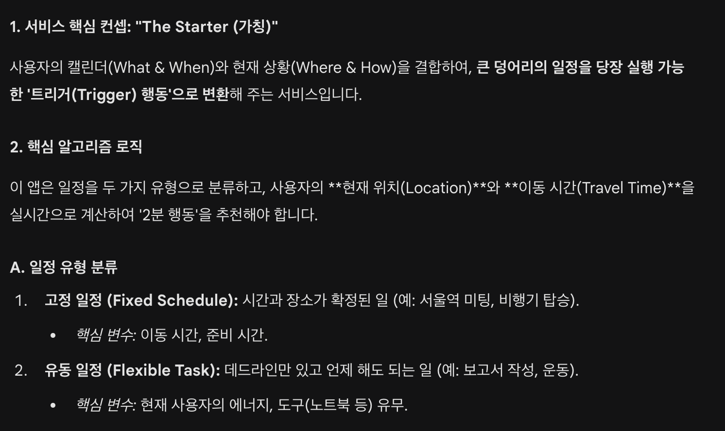 먼저 GEMINI를 사용해서 서비스 기획 및 로직 설계 초안을 만들었다.